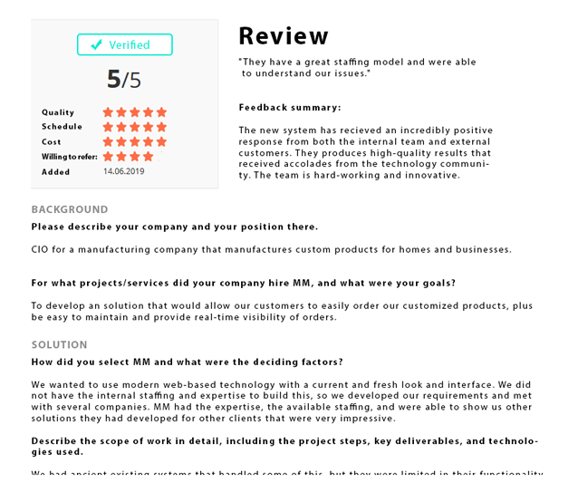 Navigieren Sie durch unvoreingenommene, beglaubigte und detaillierte Bewertungen oder laden Sie Referenzen runter und nutzen diese zur Diskussion auf Ihrer nächsten Vorstandssitzung.